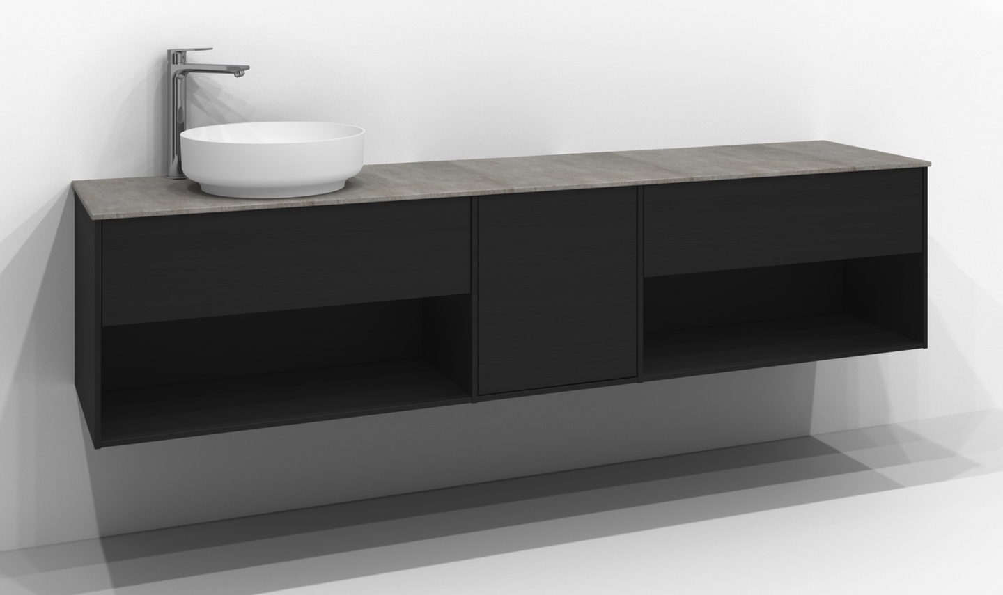 TVÄTTSTÄLLSSKÅP SVEDBERGS EPOS PLAN SVART ASK 1+1+1L ÖPPEN PUSH 199X45X45,3C