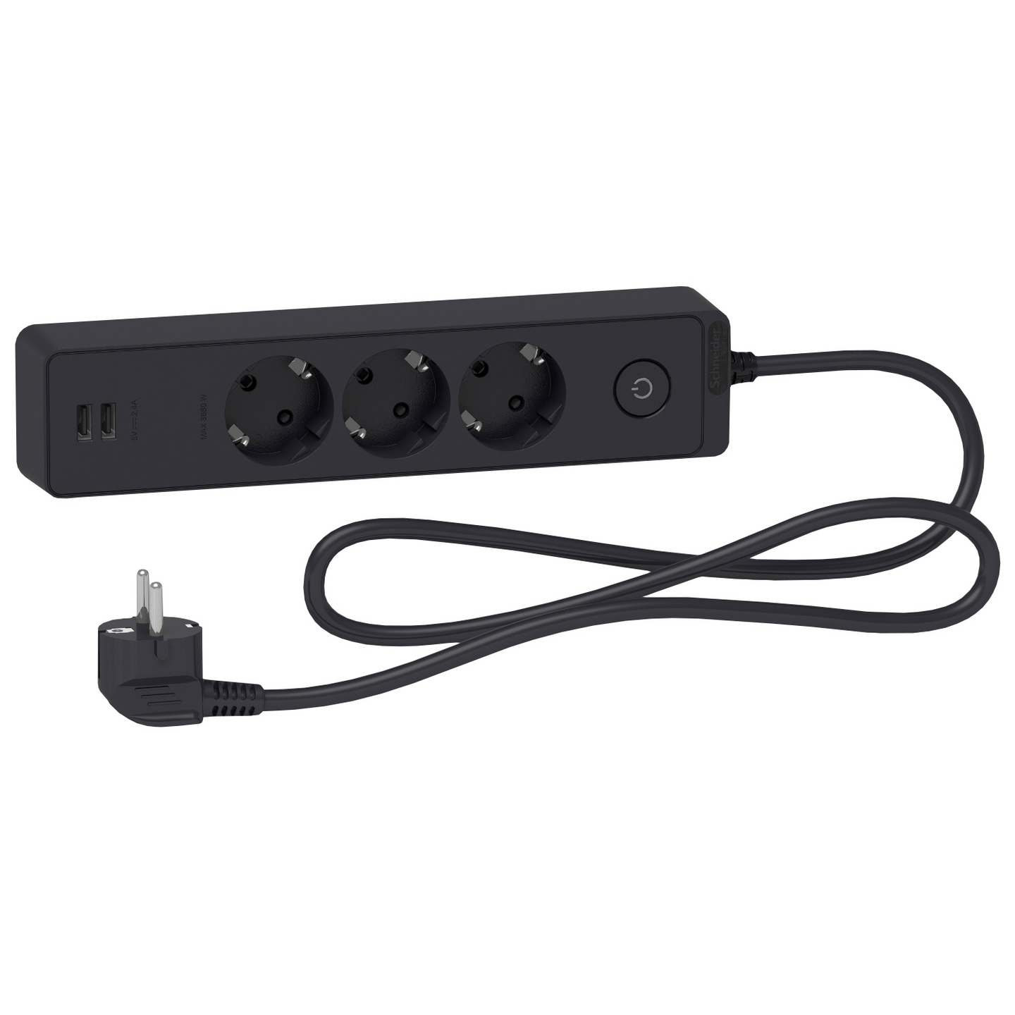GRENUTTAG SCHNEIDER ELECTRIC 3-V JORD+2USB ANTRAC, IT H05VV-F 3G1,0 BRYTARE 1,5M